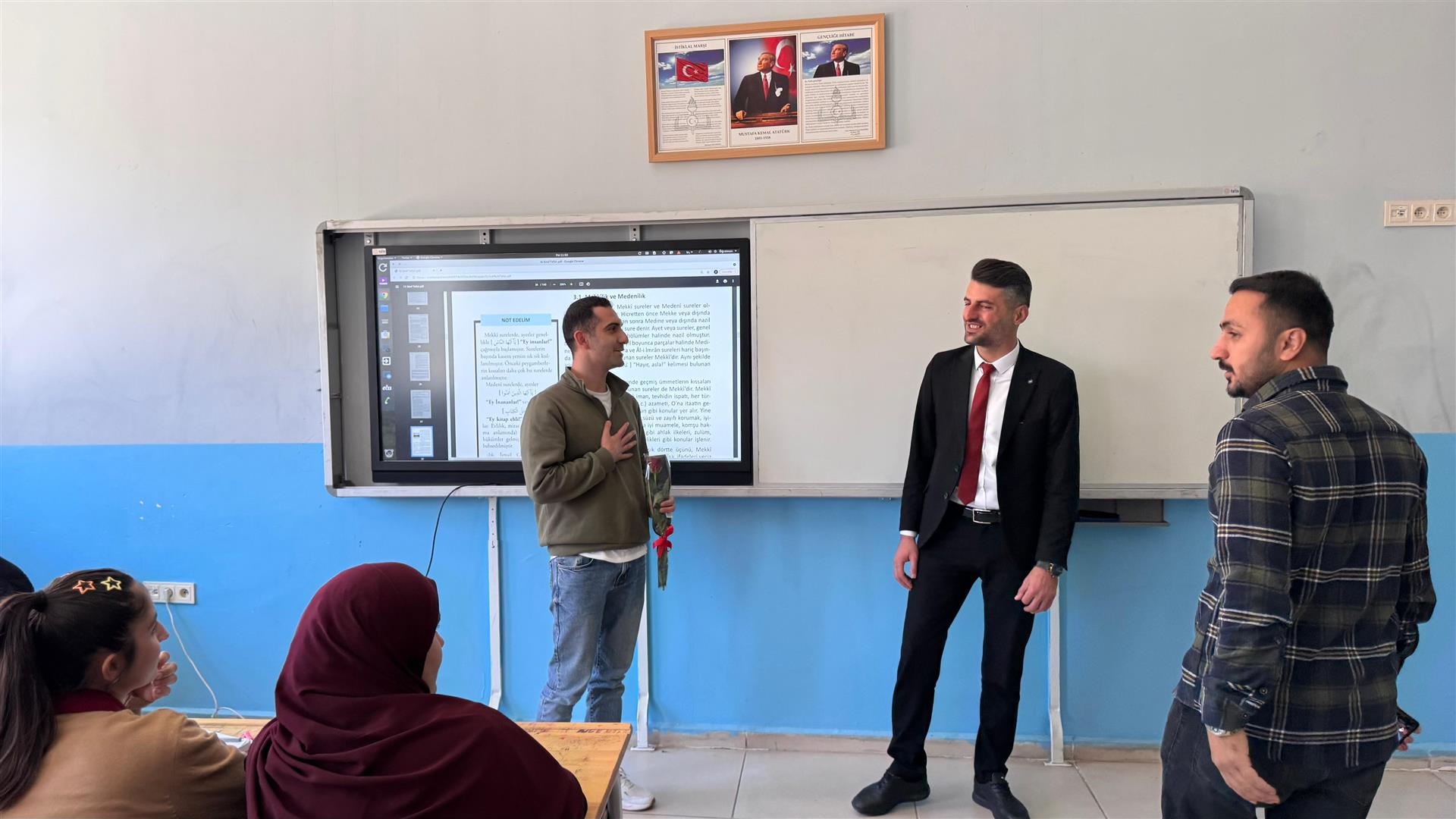 Öğretmenler Günü vesilesiyle düzenlenen ziyarette, öğretmenlerimize gül takdim edilerek günleri kutlandı. Eğitime emek veren tüm öğretmenlerimize duyulan saygı ve minnet bir kez daha vurgulandı.